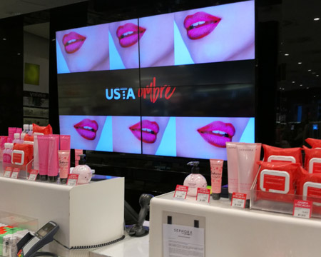 Когда размеры видео витрины известны можно задуматься над вопросом из чего ее сделать. Варианта два. Видео витрину можно сделать из широкоформатных цифровых дисплеев или из светодиодного экрана. Преимущество широкоформатных панелей в высоком разрешении. Преимущество светодиодного экрана в его яркости. А недостатки наоборот. Производители хорошо осведомлены о существующих уязвимостях обеих технологий и выпускают на рынок модели цифровых дисплеев повышенной яркости и светодиодные экраны с высокой плотность пикселей (светодиодов). Обе реализации отличаются от первых более высокой ценой.